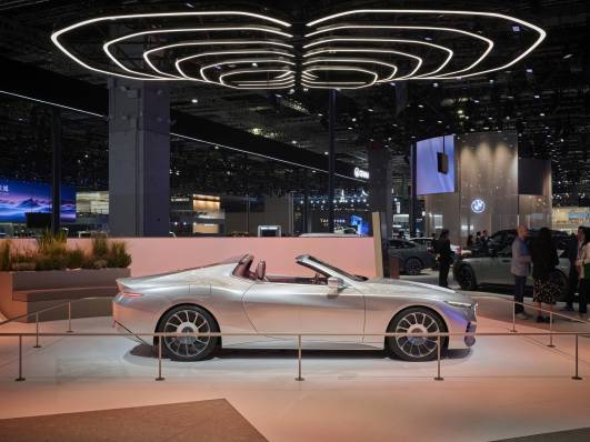 Weitere Highlights auf dem Messestand von BMW sind der BMW i5 Nostokana, bei dem sich die Exterieurfarben wechseln lassen und für den die südafrikanische Künstlerin Esther Mahlangu mehrere Grafiken entwarf, sowie die Studie Concept Skytop.