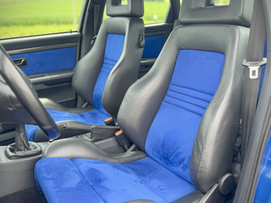 Aber der Einfluss aus Stuttgart beschränkte sich nicht nur auf den Motor: Der RS2 verfügt über Brembo-Bremsen aus dem 911, 17-Zoll-Felgen im Cup-Design, Rückspiegel und Blinker aus dem 964, Porsche-Instrumente, spezielle Stossfänger und sogar exklusive Türgriffe. Sogar das RS-Emblem auf dem Kühlergrill und der Heckklappe trägt – ebenso wie der Motor selbst – die unverkennbare Signatur „Porsche“.