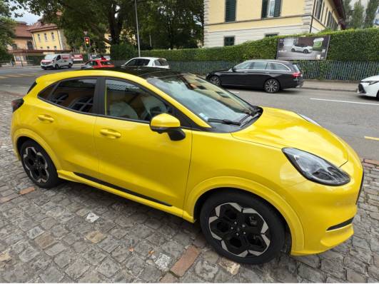 Der Ford Puma Gen-E überzeugt mit einem Drehmoment von 290 Nm und einer Leistung von 124 kW (168 PS). Der Sprint von 0 auf 100 km/h gelingt in 8,0 Sekunden, die Höchstgeschwindigkeit ist bei 160 km/h elektronisch abgeriegelt. Das Fahrwerk ist agil und sportlich abgestimmt – besonders auf kurvigen Landstrassen macht er viel Freude. Dank One-Pedal-Driving-Modus mit starker Rekuperation kann häufig auf die Fussbremse verzichtet werden.