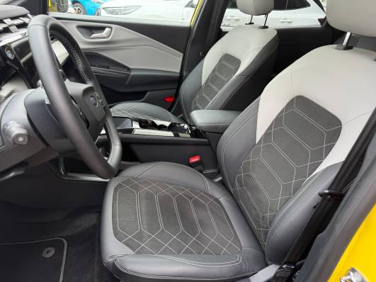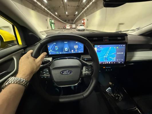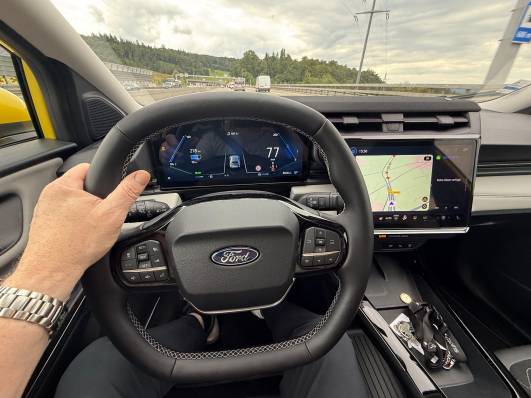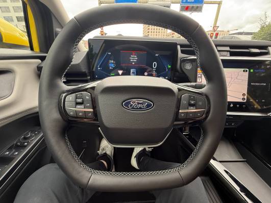 Das Interieur präsentiert sich modern mit SYNC 4 Infotainment, zwei grossen Displays (bis zu 12,8 Zoll Tacho und 12 Zoll Mittel-Display), kabellosem Apple CarPlay und Android Auto sowie Cloud-Navigation. Die Mittelkonsole wurde neu gestaltet und bietet zudem viel Stauraum; ein praktischer, hinter dem Lenkrad platzierter Wahlhebel sowie Bedienung per Voice-Control gehören zur Ausstattung.