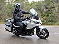 Auf der Strasse schlägt sich die Reise-Honda erwartet souverän. Zwei 310-Millimeter-Scheiben vorn und Zweikanal-ABS verzögern präzise und beherzt. Die serienmässige Wheelie-Kontrolle hält das 17-Zoll-Vorderrad auch bei voller Beladung am Boden. Fünf elektronische Fahrprogramme hat Honda der NT 1100 spendiert. Drei sind konfiguriert (Urban, Tour, Rain), bei zweien kann der Fahrer über die üppig bestückte Bedienarmatur links selbst den Mix aus Zutaten wie Motorbremse und -leistung komponieren. Das DCT hat wie üblich einen «D»-Betriebsmodus und einen dreistufigen «S»-Modus. Direkte Gasannahme, zügiges automatisches Runterschalten beim Bremsen vor Kehren und Kurven, munteres Hochdrehen – je nach Gasgriffstellung erledigt das DCT-Getriebe all das ganz allein und zur rechten Zeit. Die klassische 6-Gang-Schaltung scheint so gesehen die schlechtere Wahl zu sein.