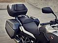 Die Seitenkoffer fassen 33 beziehungsweise 32 (rechts) Liter Gepäck. Sie sind wie Hauptständer, Gepäckträger, Heizgriffe, Voll-LED-Beleuchtung und Tempomat serienmässig an Bord. Die flache Form der abnehmbaren Boxen gefällt, ein Helm passt allerdings nicht hinein. Auf Wunsch löst ein Topcase (50 l) das Problem. Plus Tankrucksack steigt das Ladevolumen dann auf solide 120 Liter. Vorbildlich umgesetzt hat Honda den Wetterschutz. Transparente Deflektoren schirmen die Hände ab. Die Stiefel bleiben sogar bei Dauerregen trocken, wie unsere Testfahrt zeigt, die Schienbeine weitgehend auch. Beides ist der filigranen Motorverkleidung zu verdanken.