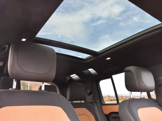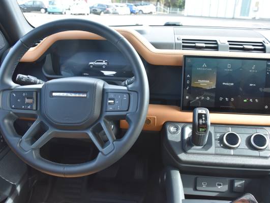Der Schalthebel des Automatikgetriebes wurde prominent unterhalb des modernen und intuitiv bedienbaren Infotainment-Systems «Pivo Pro» positioniert. Die wichtigsten Fahrinformationen bildet das volldigitale Cockpit hinter dem typischen Vierspeichen-Lenkrad mit dem Modellschriftzug ab. Den Defender 110 gibt es mit fünf, sechs oder sieben Sitzen (5+2). Nach unten rundet der Defender 90 mit kürzerem Radstand und nach oben der Defender 130 für bis zu acht Passagiere das drei Karosserieversionen umfassende Angebot ab.