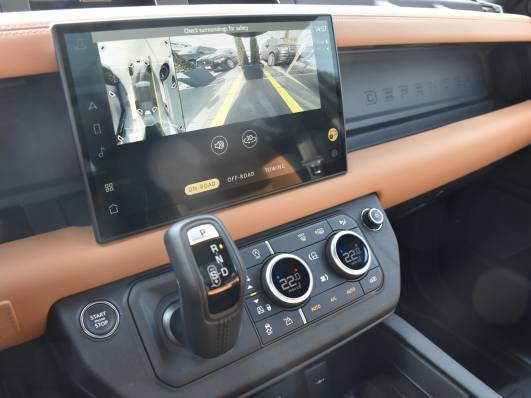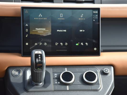 Dazu fährt der Defender durch bis zu 90 cm tiefe Gewässer. Sehr nützlich ist der «ClearSight Ground View» - ein innovatives System, bei dem unmittelbar vor den Vorderrädern positionierte Kameras die Bilder vom Untergrund auf das Display im Armaturenbrett übertragen.