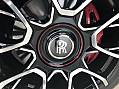 Die Fahrzeugfront trägt die in Schwarz-Chrom ausgeführte Kühlerfigur «Spirit of Ecstasy». Die Figur, die bereits seit 110 Jahren den edlen Briten schmückt, zeigt übrigens eine Frau mit einem im Wind wehenden Kleid - und nicht wie gelegentlich angenommen eine Frau mit Flügeln. Das markante Doppel-R-Emblem der Marke ist, wie bei Black Badge üblich, an der Vorderseite, an der Seite und am Heck in Silber auf Schwarz ausgeführt. Chromflächen wie die Kühlergrill- und Scheibeneinfassungen sowie Heckklappengriff und -verkleidung, der untere Lufteinlass und die Abgasendrohre sind abgedunkelt. Im Kontrast dazu bleiben die vertikalen Kühlergrillstreben poliert. Geschmiedete 22-Zoll-Alu-Karbonräder sind ausschliesslich dem Black Badge vorbehalten. Dazu wurden die Bremssättel erstmals in glänzendem Rot lackiert.