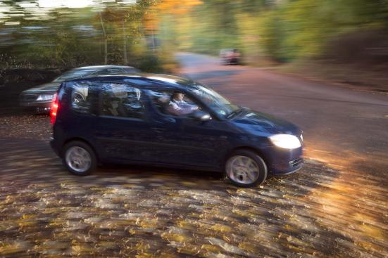 Les routes d’automne ne sont pas glissantes par temps de pluie uniquement. L’air fortement plus humide et les températures basses peuvent transformer votre sortie en voiture en glissades. C’est pour cela qu’il faut rouler prudemment aux endroits ombragés – et d’autant plus si la route est très sinueuse. Sur route mouillée, il faut multiplier la distance de sécurité par deux, comparée à la normale. En outre, il est recommandé de freiner de temps en temps, prudemment et en considérant les véhicules qui suivent, afin de sécher les plaquettes de frein humides, de contrôler leur efficacité et de sentir l’état de la route.