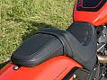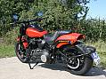 Non ci sono dubbi: ha sicuramente un aspetto più aggressivo degli altri modelli della serie Softail. Il faro rettangolare, piuttosto atipico, le dona particolarmente. In ogni caso, con la nuova combinazione di colori rosso/nero e il logo su un solo lato del serbatoio, la moto ha davvero fascino. L’accattivante verniciatura è chiaramente diversa dai modelli dell’anno precedente, colorati di bianco o di marrone metallizzato. È sempre sorprendente l’effetto che possono fare i colori.