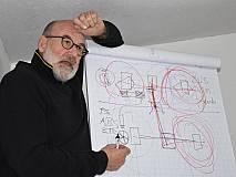 Il corso inizia con caffè e cornetto mentre vengono date le prime informazioni, seguite da due ore di formazione teorica durante le quali l’istruttore “Che” Bodenheimer condividerà le sue conoscenze approfondite su angoli di rampa e di pendenza, i centri di gravità, le articolazioni degli assi, la riduzione del fuoristrada, i bloccaggi dei differenziali e altri ausili di trazione. L’esperto sottolinea anche l’importanza degli pneumatici: “Il veicolo aderisce a superfici che per dimensioni non superano quattro palmi della mano. Ecco perché è importante montare pneumatici ottimali, sia in estate che in inverno”. Consiglia inoltre di andare in un’officina o rivolgersi ad un esperto di pneumatici, i quali dovrebbero essere utilizzati per massimo cinque anni. Anche la pressione degli pneumatici è importante: idealmente, dovrebbe essere abbassata prima di percorrere una strada accidentata, per renderli più larghi e ampliare le superfici di contatto. Si tratta di un buon trucco per guidare dritti, in salita e in discesa. Indebolire i fianchi degli pneumatici, invece, ha effetti negativi quando si guida in pendenza. “Che” Bodenheimer dà anche importanti consigli su cosa prendere in considerazione quando si acquistano ed utilizzano attrezzature aggiuntive, come portapacchi, deflettori per rami o luci aggiuntive.